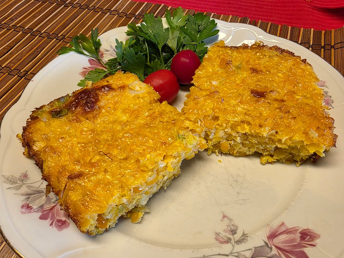 生トウモロコシの実を削ぎ、ミキサーで粗く砕く。玉ねぎをバターで炒めて冷ます。卵を泡立て、トウモロコシ、炒めた玉ねぎ、すりおろしチーズ、牛乳を混ぜる。バターを塗った型に流し、180℃のオーブンで45〜50分焼く。