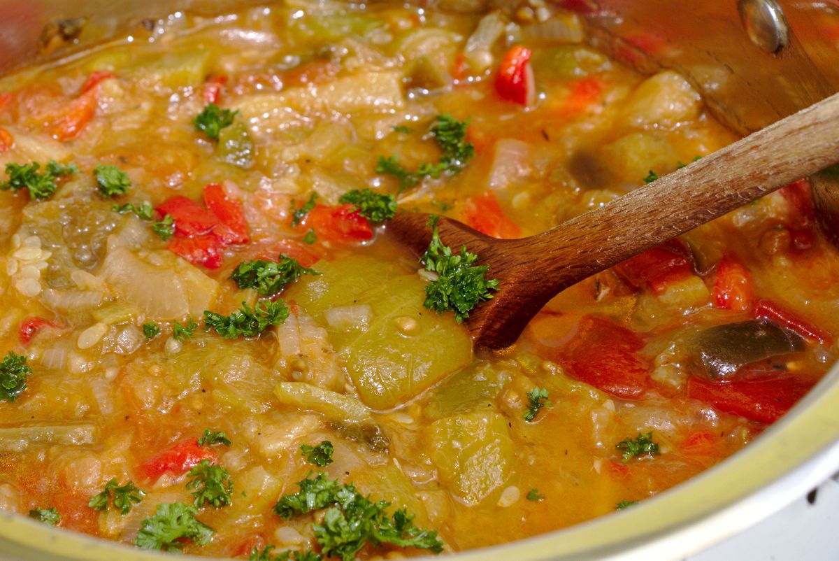 【材料】ズッキーニ、ナス、パプリカ(赤・黄)、トマト、玉ねぎ、にんにく、オリーブオイル、タイム、ローズマリー、バジル、塩、胡椒。【調理】各野菜を一口大に切り、オリーブオイルで玉ねぎ・にんにくを炒める。ナス、パプリカ、ズッキーニの順に加え、トマトとハーブを入れて弱火で30〜40分煮込む。温かくても冷たくても美味しい。