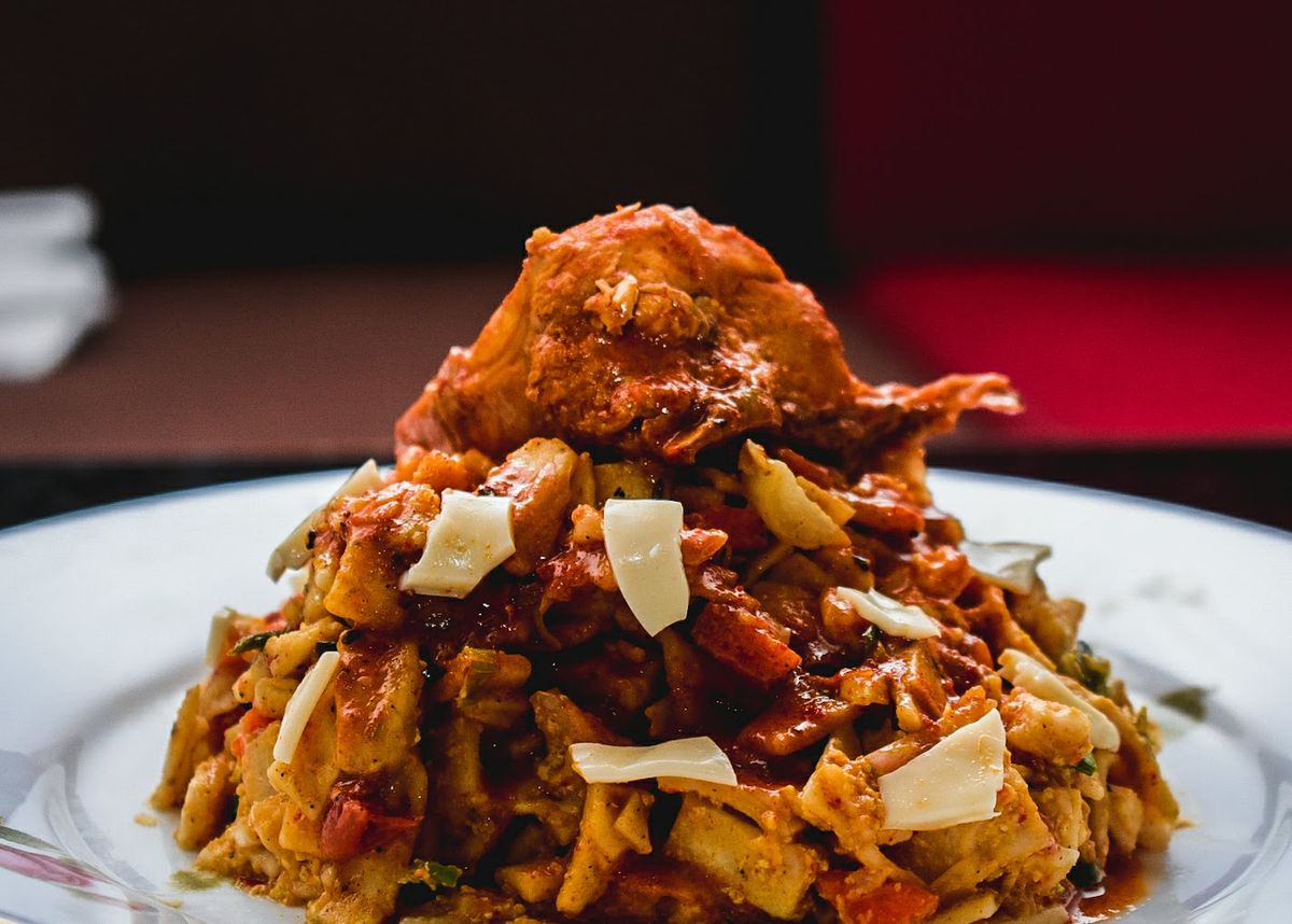 ゴダンバロティを鉄板の上で金属ヘラで細かく刻みながら野菜や肉、卵、スパイスと炒めるスリランカの国民的ストリートフード。リズミカルな調理音が特徴的。