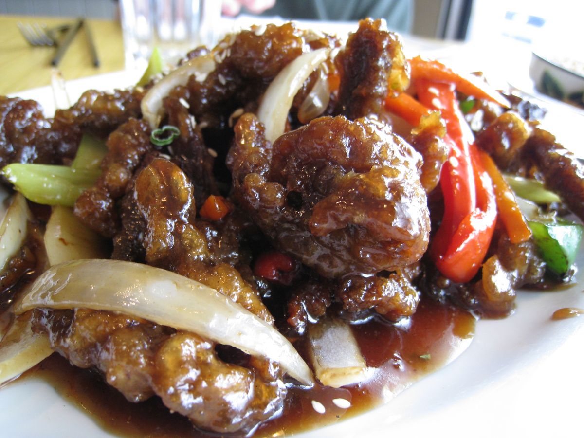1975年にカルガリーのチャイナタウンにある「シルバーイン」のシェフ・ジョージ・ウォンが考案した中国系カナダ料理。薄切りにした牛肉にコーンスターチをまぶして揚げ、甘酸っぱい生姜・ニンニクソースで絡めた料理。現在ではアルバータ州を超え全カナダのほぼすべての中華レストランで提供される名物料理。