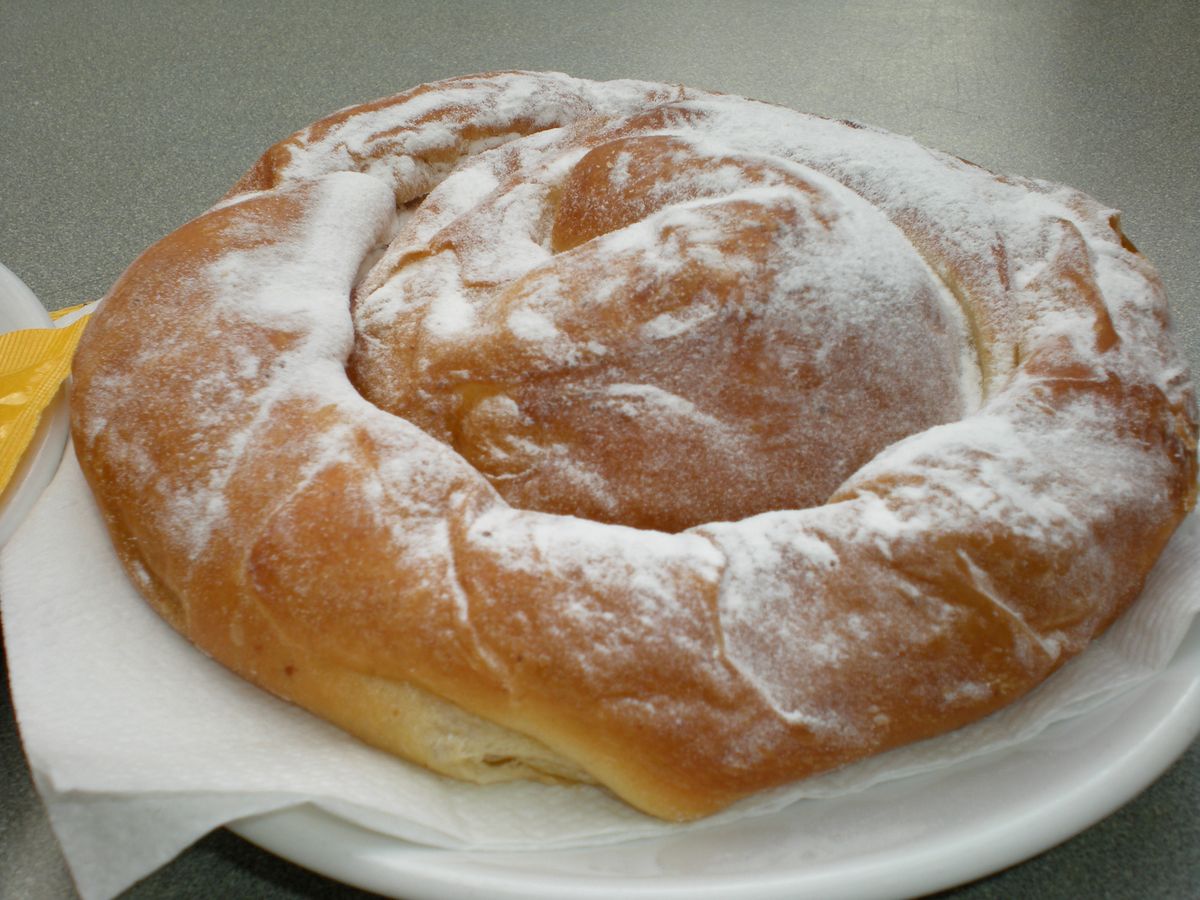 強力粉、卵、砂糖、イーストを混ぜて生地を作る。1時間発酵させた後、生地を薄く伸ばしてラードを塗り広げる。細長く巻いてからカタツムリ状に渦巻きに成形する。天板に並べて一晩冷蔵庫で2次発酵させる。190℃のオーブンで15〜20分焼く。冷めたら粉砂糖をたっぷりふりかける。