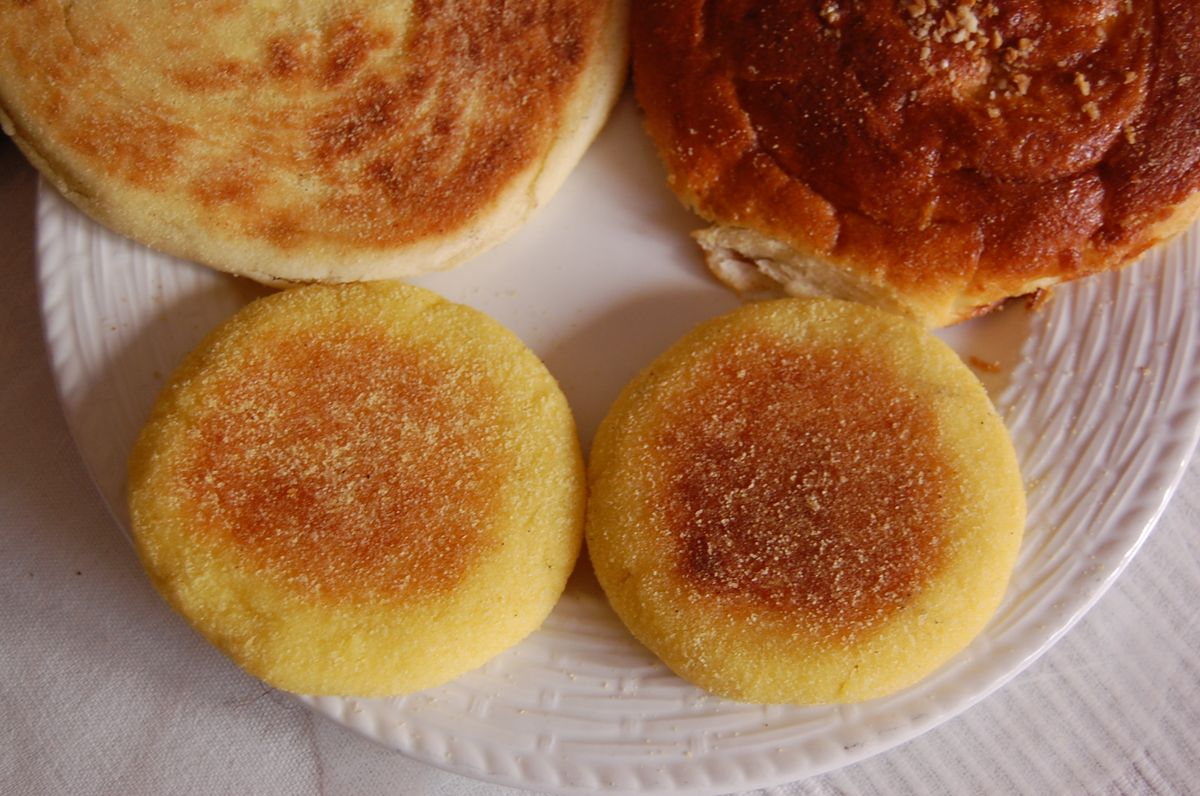 材料:セモリナ350g、砂糖3大匙、ベーキパウダー2小匙、盐1/4小匙、バター125g、牛奶120-180ml。作り方:セモリナ、砂糖、ベーキパウダー、盐を混ぜる。バターを指でクリーム状になるまで混ぜ、牛奶を加えてまとめる。10-15分休ませる。手をセモリナ Pochしながら小さなFlat Circleに成形。强火のDry Skilletで両面をGold Brownになるまで焼く。