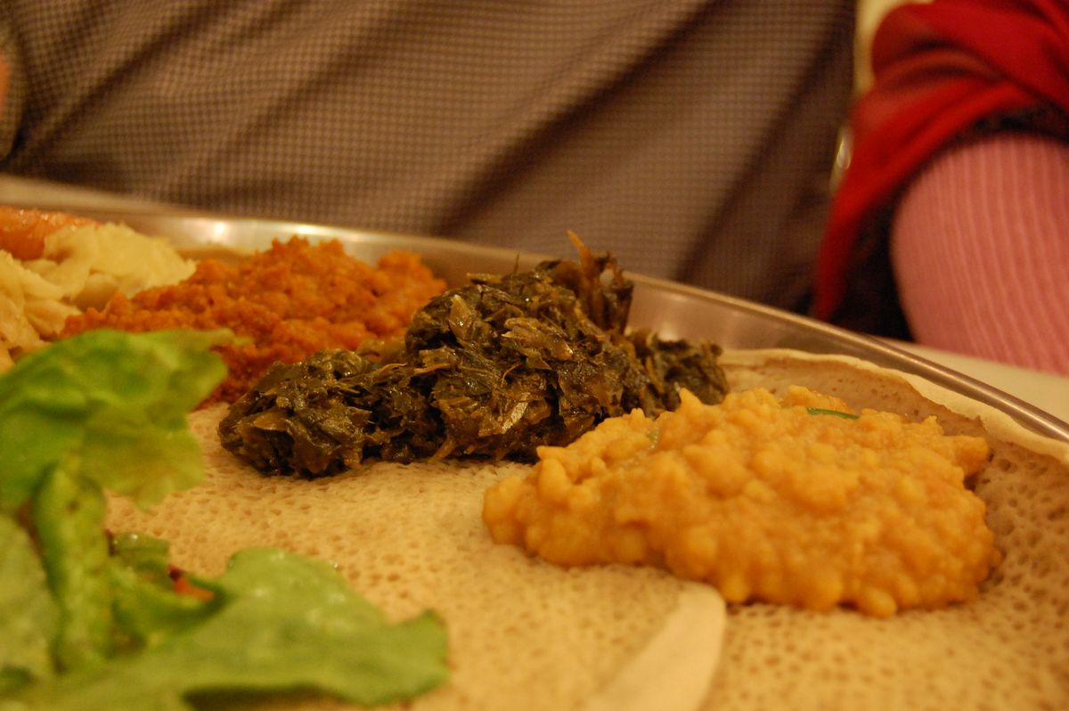 コラードグリーン(ケール類)をにんにく、生姜、ニテルキベで炒め煮にしたエチオピアの定番副菜。断食期間にはニテルキベの代わりに植物油を使用するヴィーガン版が作られる。キトフォの付け合わせとして特に重要で、生肉の濃厚さを爽やかな青菜の風味が引き立てる。シンプルながら、にんにくと生姜が効いた滋味深い味わい。イェソムゴメン(断食版)は精進料理の盛り合わせの一品としても登場する。