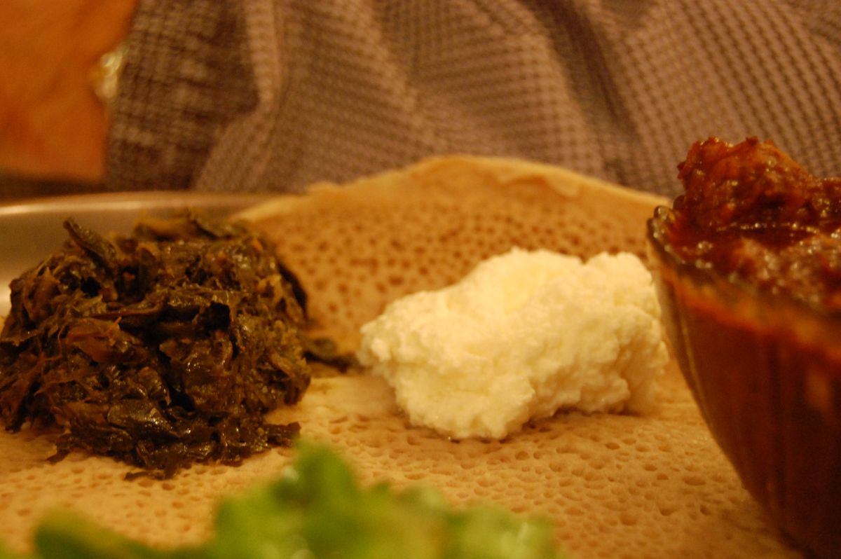 エチオピアのフレッシュカッテージチーズ。牛乳を自然発酵させるか、レモン汁やバターミルクで凝固させて作る。クリーミーだが淡白な味わいで、スパイシーなエチオピア料理の箸休めとして欠かせない存在。キトフォの付け合わせとして特に有名で、辛さを和らげる役割を果たす。ゴメンと一緒に「アイブベゴメン」として盛り付けられることも多い。リコッタチーズに似た柔らかい食感で、料理の辛さのバランスを取る重要な役割を持つ。
