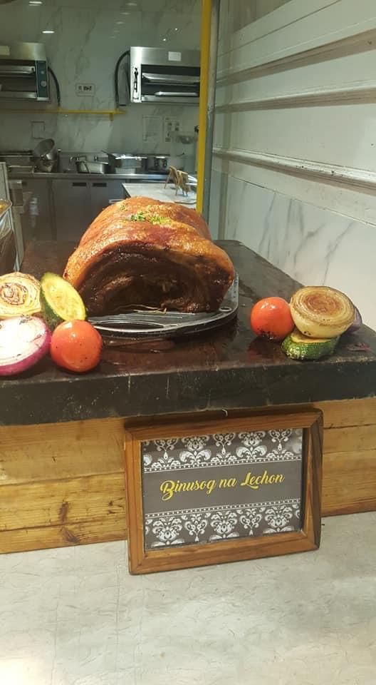 セブ島名物の丸焼き豚。レモングラス、にんにく、葉玉ねぎなどを詰めて炭火でじっくりローストする。皮はパリパリ、肉はジューシーで、フィリピンの祝祭日やフィエスタに欠かせない祝いの料理。