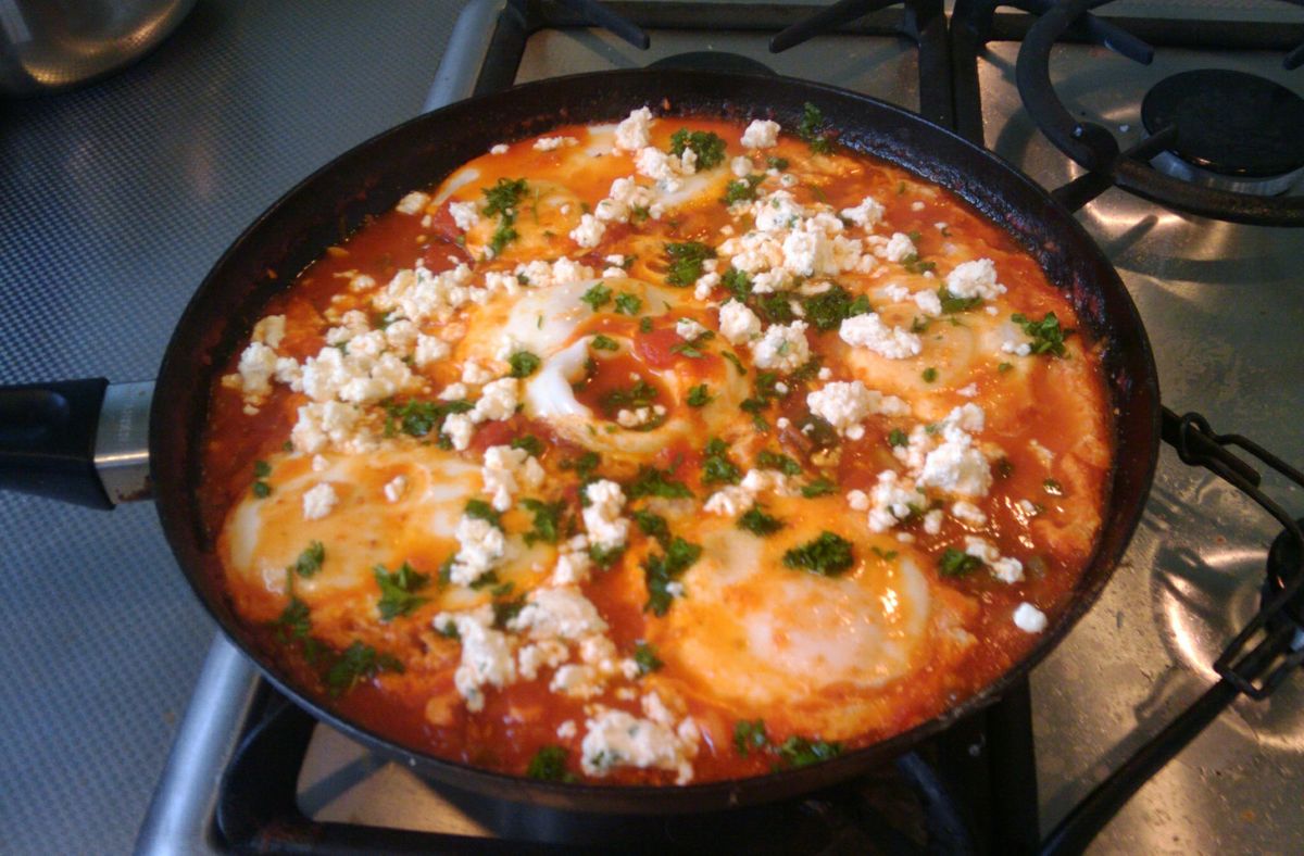 スパイス入りトマトソースの中に卵をポーチした料理。クミン・パプリカ・カイエンで辛味と深みを出す。フライパン一つで作れる手軽な料理で、朝食・昼食どちらにも食べられる。パンにつけて食べるのが一般的。