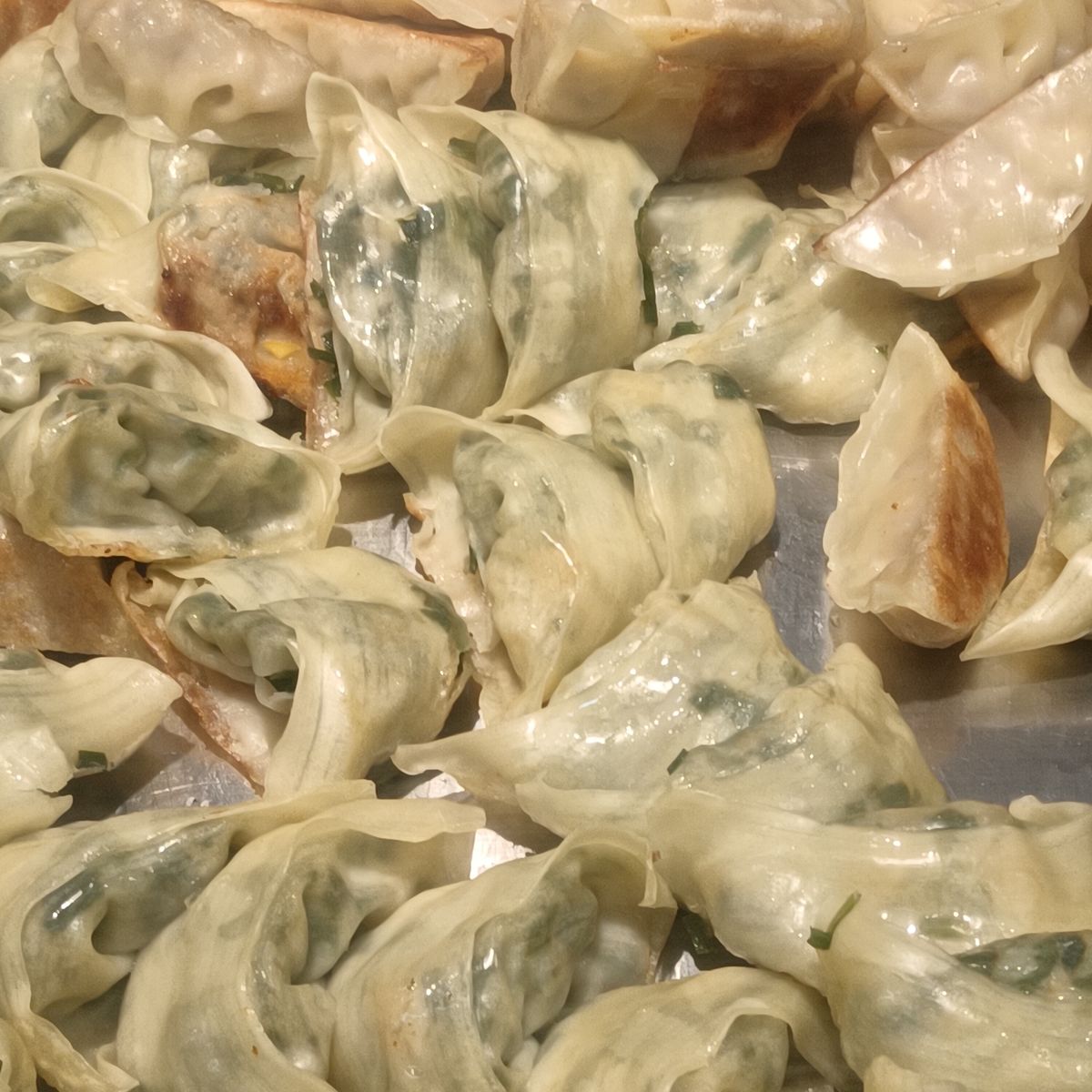 豚ひき肉・白菜・ニラ・生姜・醤油・ごま油で餡を作る。薄く伸ばした皮で餡を包み、半月形に成形する。フライパンに油を引いて並べ、水を加えて蓋をして蒸し焼きにし、最後に底面をカリッと焼き上げる。
