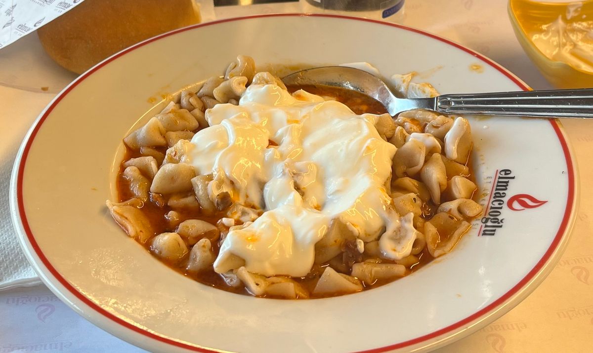 中央アジア全域で愛される蒸し餃子で、カザフスタンでも家庭料理・レストランの定番。カザフ式マンティは刻んだ羊肉または牛肉と玉ねぎをスパイスで味付けした餡を薄い生地で包み、多段式の蒸し器(マンティカスカン)で蒸し上げる。南部ではかぼちゃ入りのバリエーションもある。サワークリーム(カイマク)やトマトソースを添えて食べるのが一般的。皮の中に閉じ込められた肉汁が最大の魅力で、一口噛むとジューシーな旨味が溢れ出す。