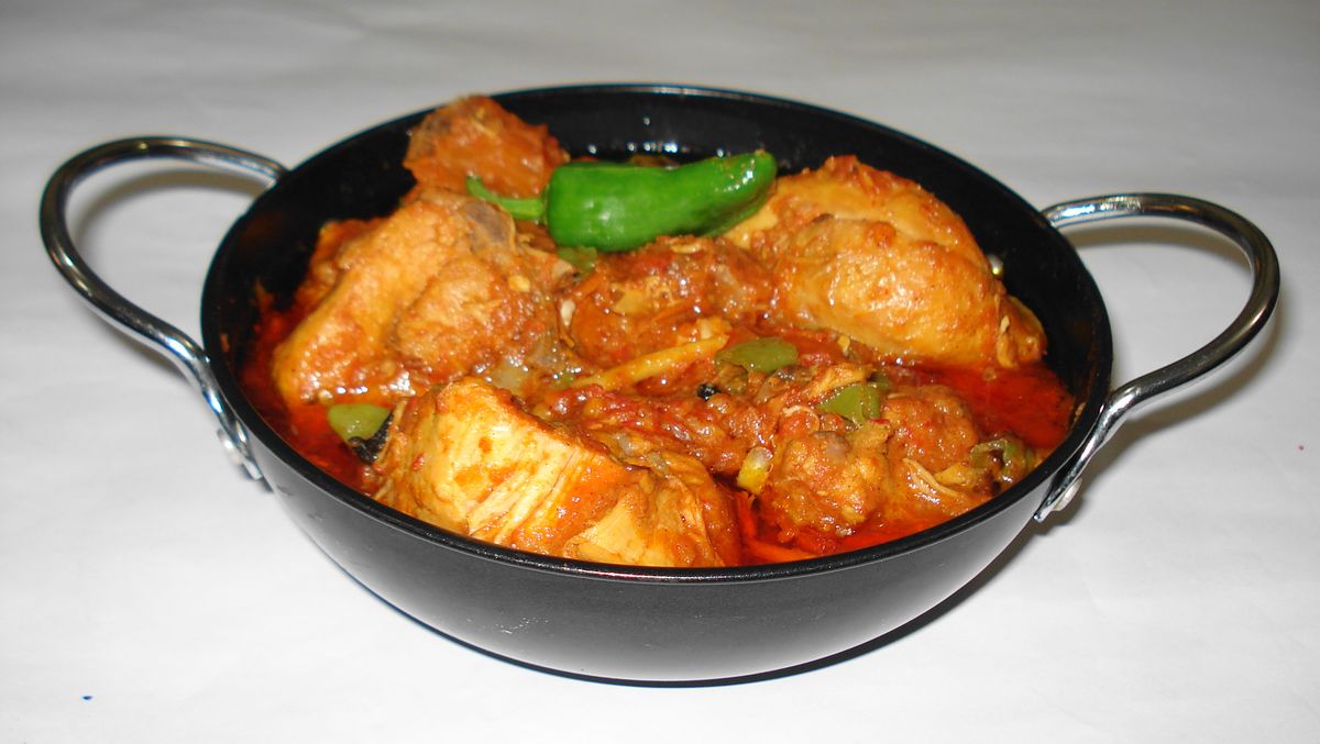 両手付きの鉄鍋(カライ)で調理される炒め煮込み料理。羊肉や鶏肉をトマト、青唐辛子、ニンニク、生姜とともに強火で炒め煮にする。トマトの酸味とスパイスのパンチが効いた濃厚な味わいが特徴。そのまま鍋ごと食卓に出され、ナンですくって食べる。