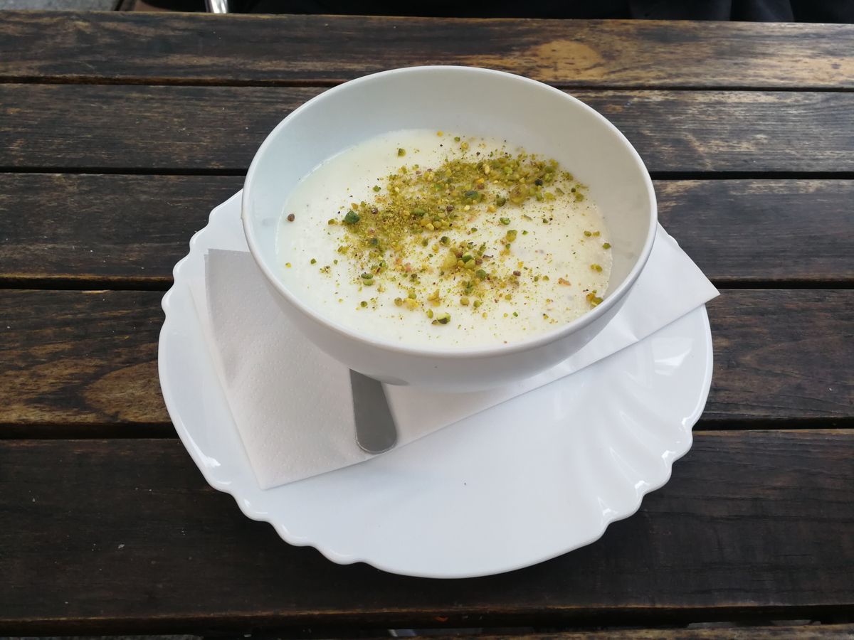 【材料】牛乳、コーンスターチ(または米粉)、砂糖、カルダモンパウダー、ローズウォーター、ピスタチオ、アーモンド。【作り方】コーンスターチを少量の冷たい牛乳で溶く。残りの牛乳を鍋で温め、砂糖を溶かす。溶いたコーンスターチを加え、絶えずかき混ぜながらとろみがつくまで弱火で煮る。カルダモンとローズウォーターを加えて火を止める。小さな陶器の器に注ぎ、刻んだピスタチオとアーモンドを飾り、冷蔵庫で冷やし固める。
