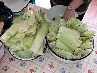 1. 新鮮なトウモロコシの粒を削ぎ、すりつぶす 2. チーズ、卵、ラード、塩、スパイスを混ぜる 3. トウモロコシの皮を二枚重ねて具をのせる 4. 包んで紐で縛る 5. 大きな鍋で湯を沸かし、蒸し器で約30分蒸す 6. トウモロコシの皮を開いてそのまま食べる